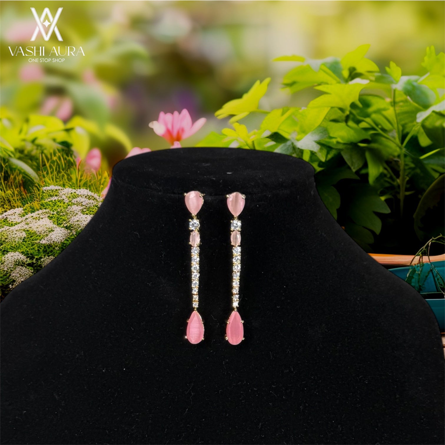 Pastel Pink Stone Danglers are an elegant and graceful choice for anyone seeking a soft, feminine touch in their jewelry.