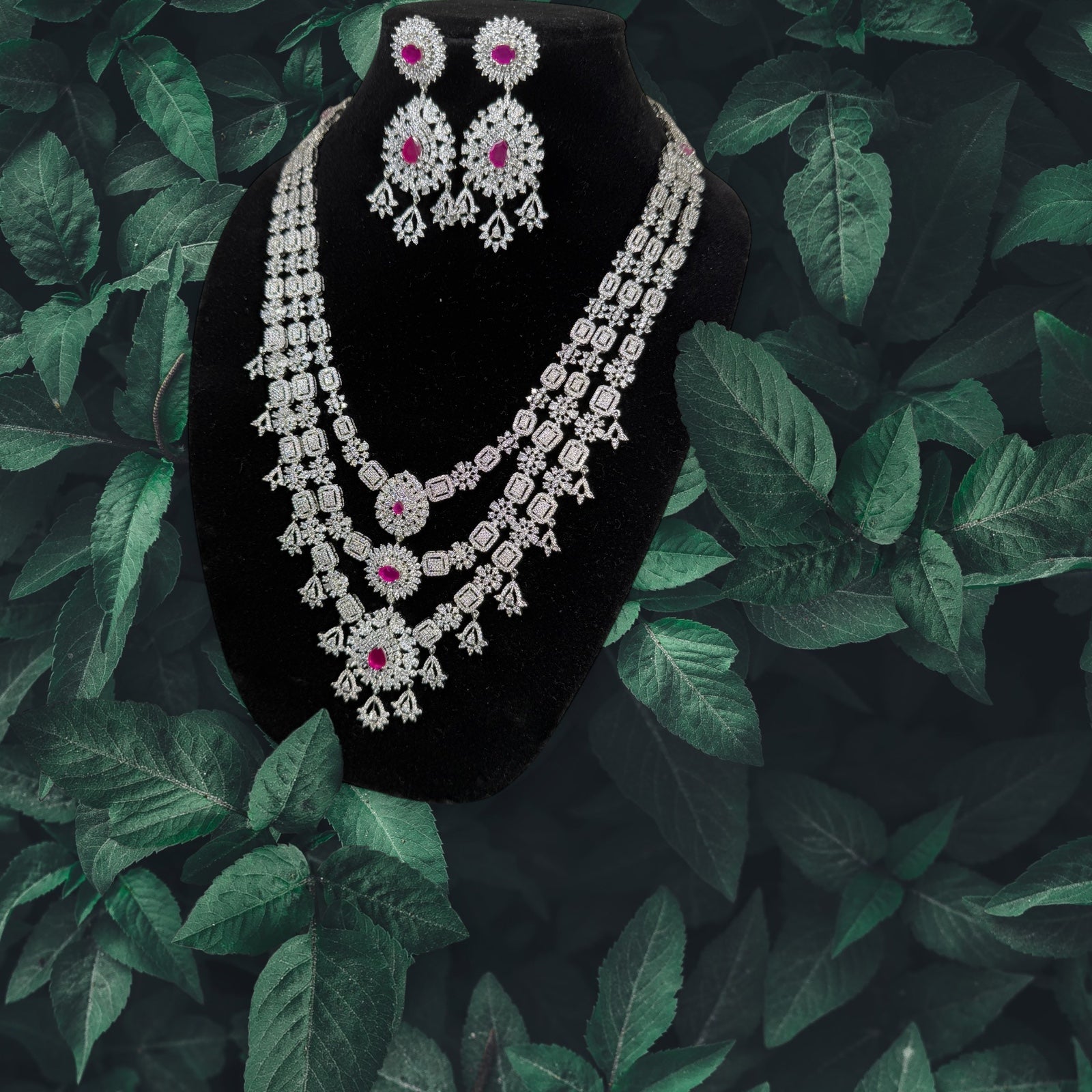 Diamond Replica Long Haram with pink stones.